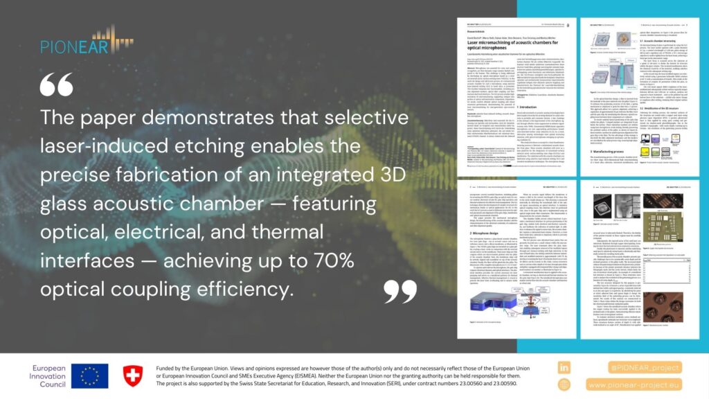 🗣️ 💬 In the words of one of the authors, David Bischof, Research associate at OST: “The paper demonstrates that selective laser‑induced etching enables the precise fabrication of an integrated 3D glass acoustic chamber — featuring optical, electrical, and thermal interfaces — achieving up to 70% optical coupling efficiency”.